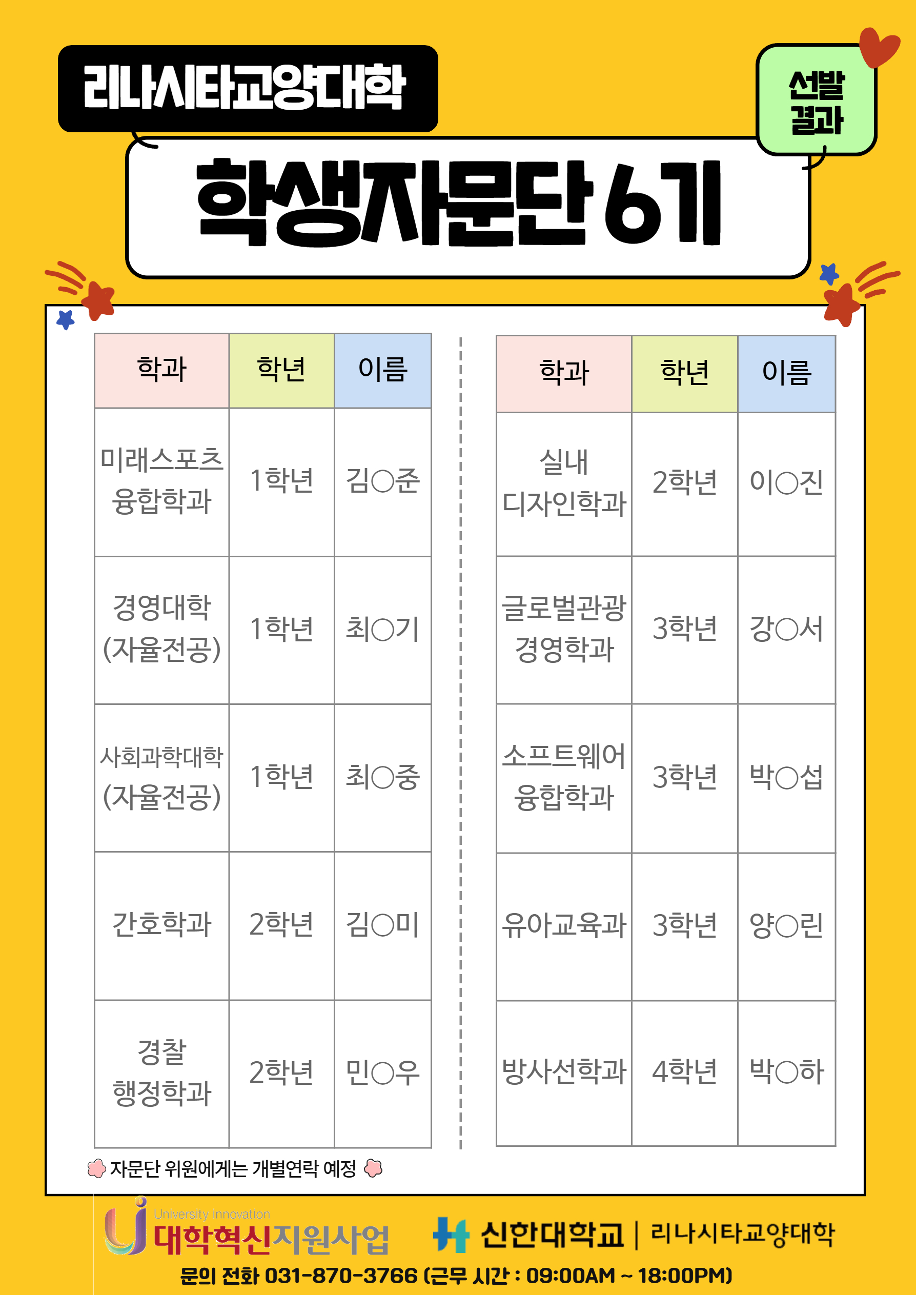 [비교과프로그램] 2025학년도 「리나시타 학생자문단 6기」 선발 결과 안내