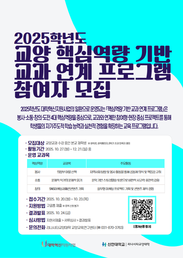 [비교과프로그램] 2025학년도 핵심역량 기반 교과 연계 프로그램 참여자 모집 안내(추가)