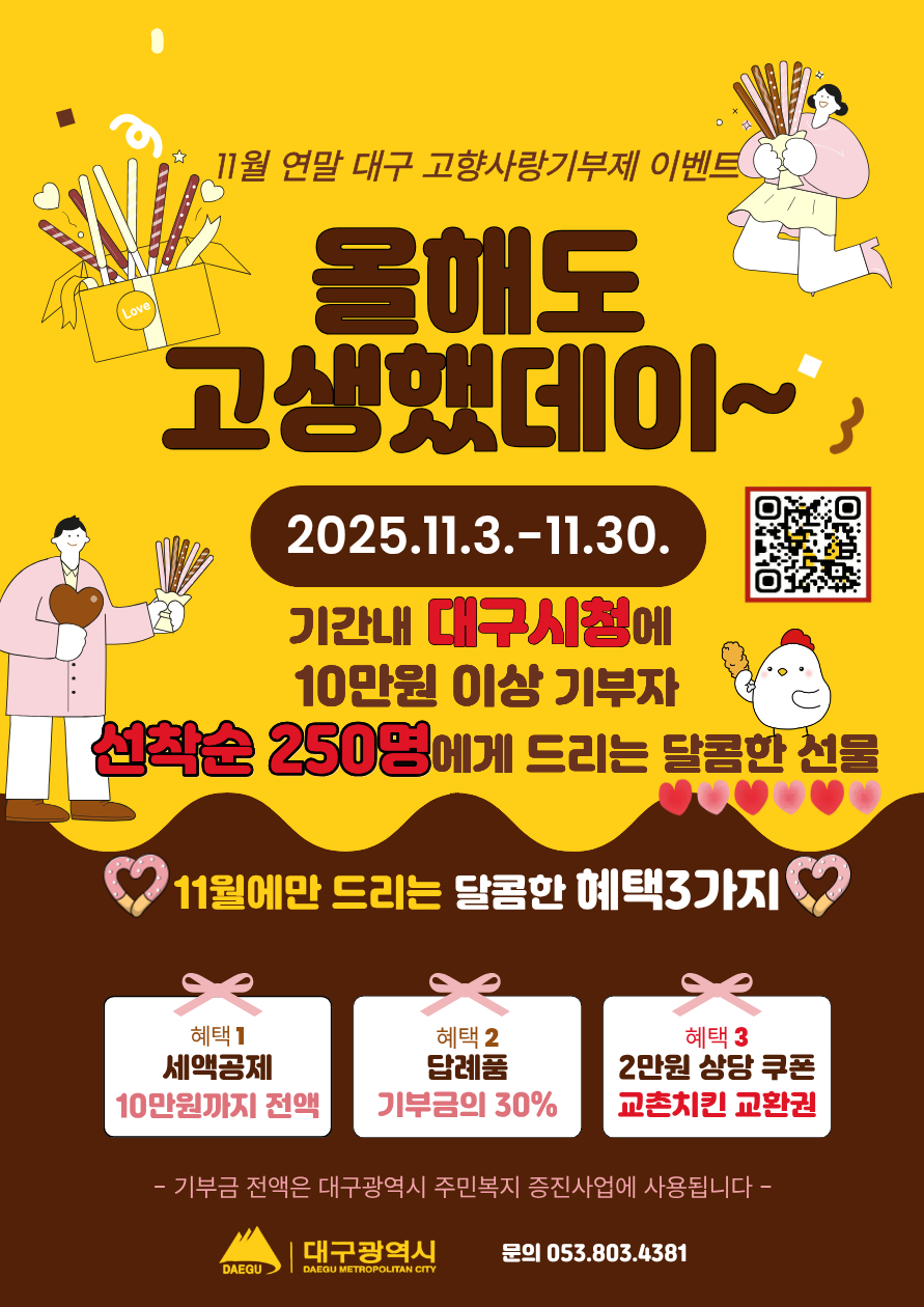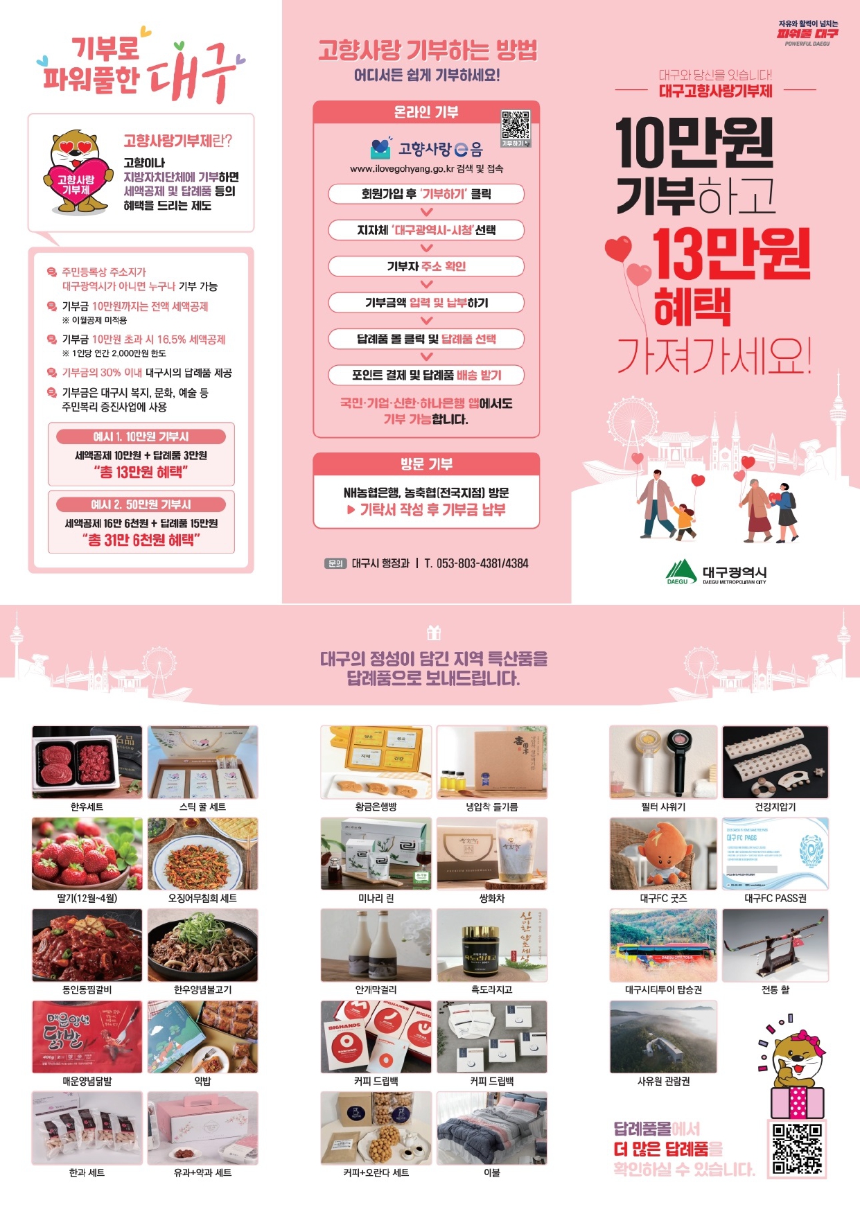 11월 연말 대구광역시 고향사랑기부제 이벤트 안내