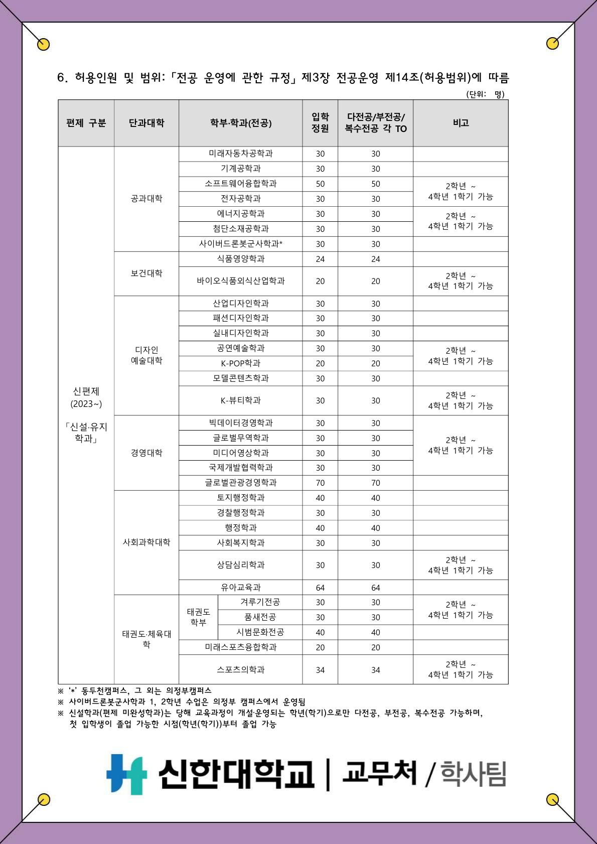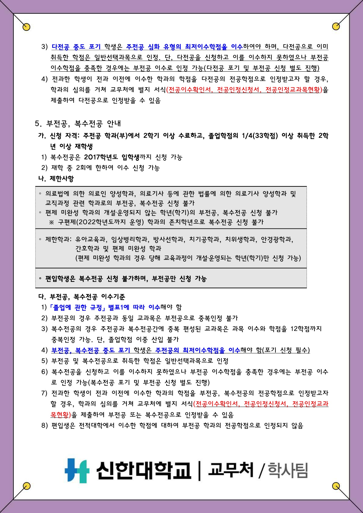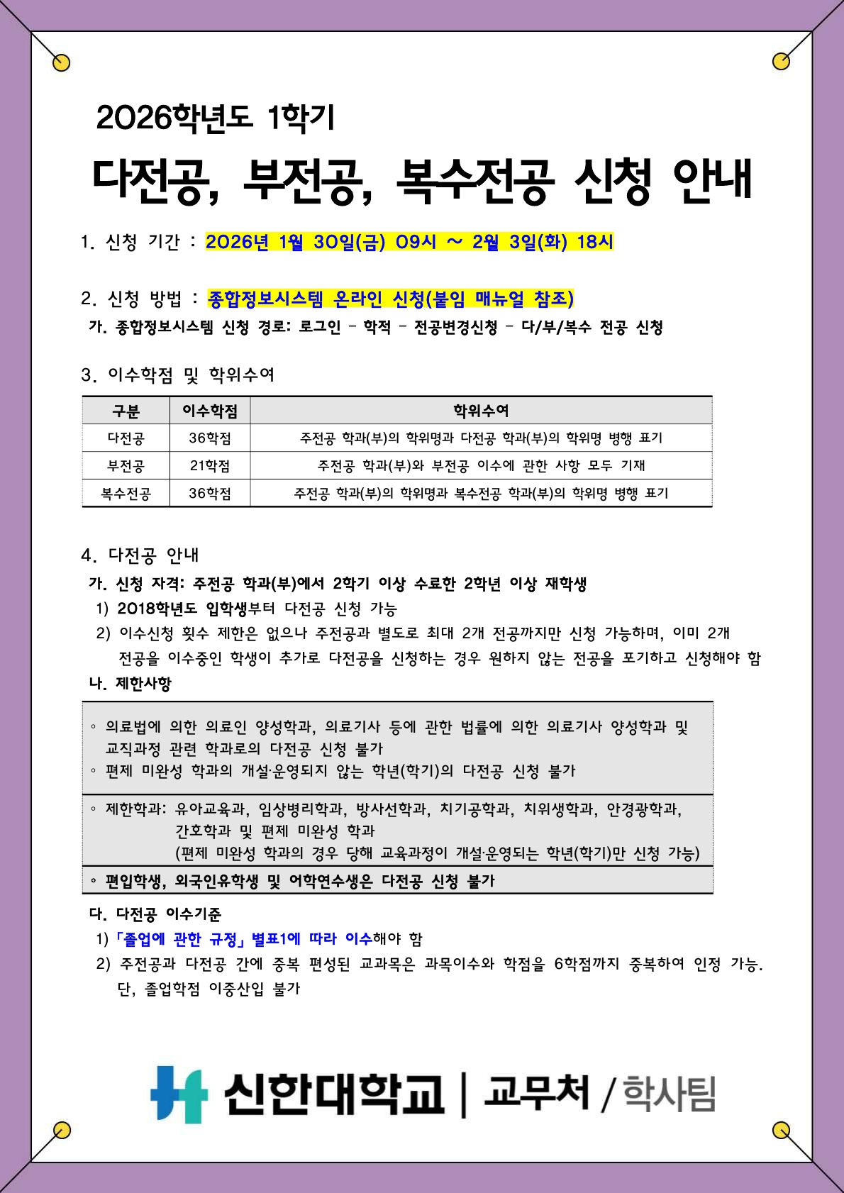 [학사팀/학적] 2026학년도 1학기 다전공, 부전공, 복수전공 신청 안내