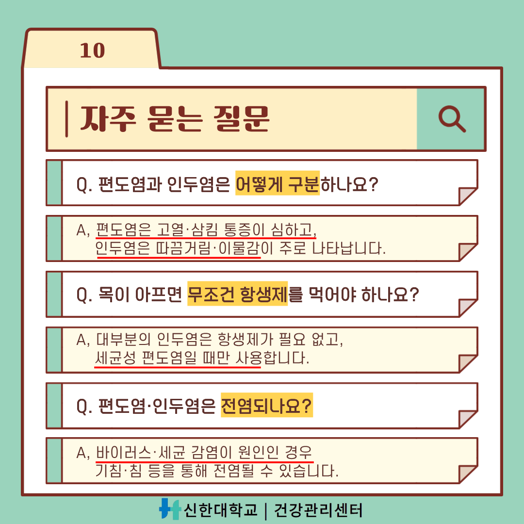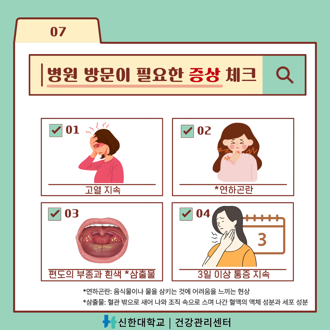 [건강관리센터] 건강정보 카드뉴스-"인두염·편도염 핵심정리"