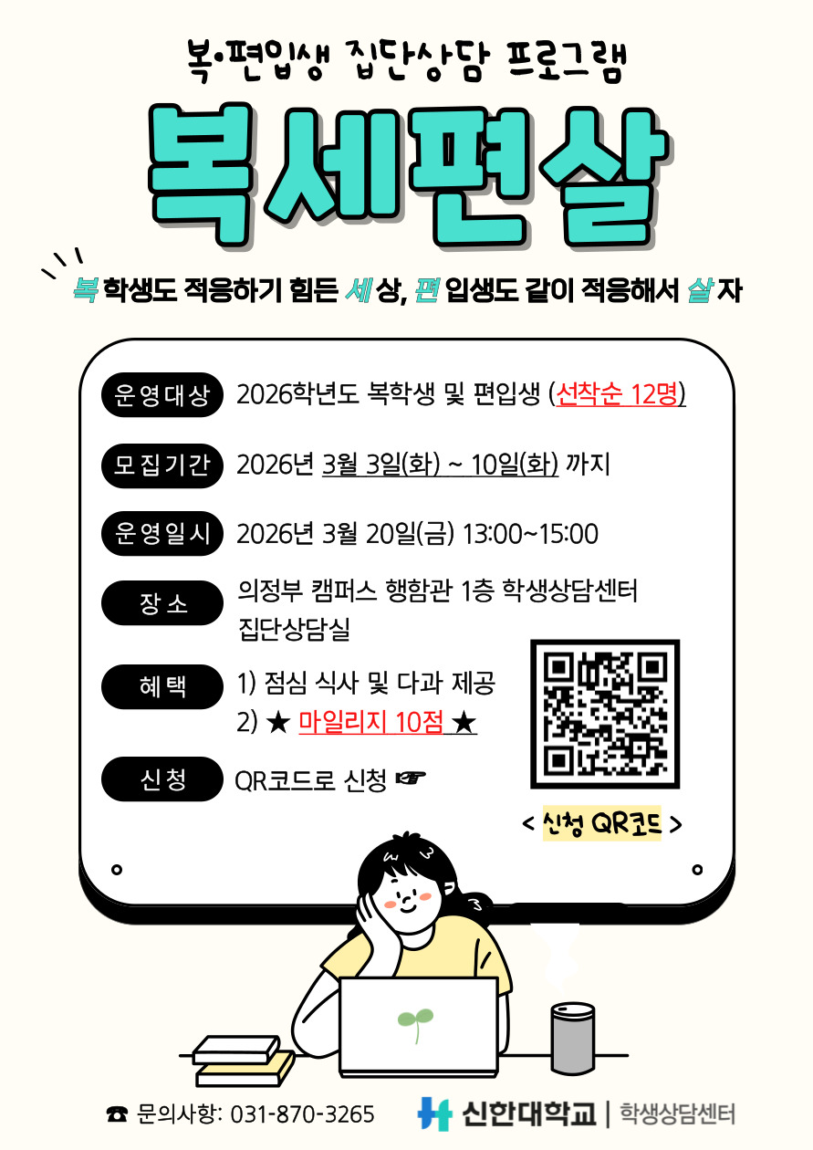[학생상담센터] 복·편입생 집단상담 "복세편살" (2026학년도 복·편입생 대상)