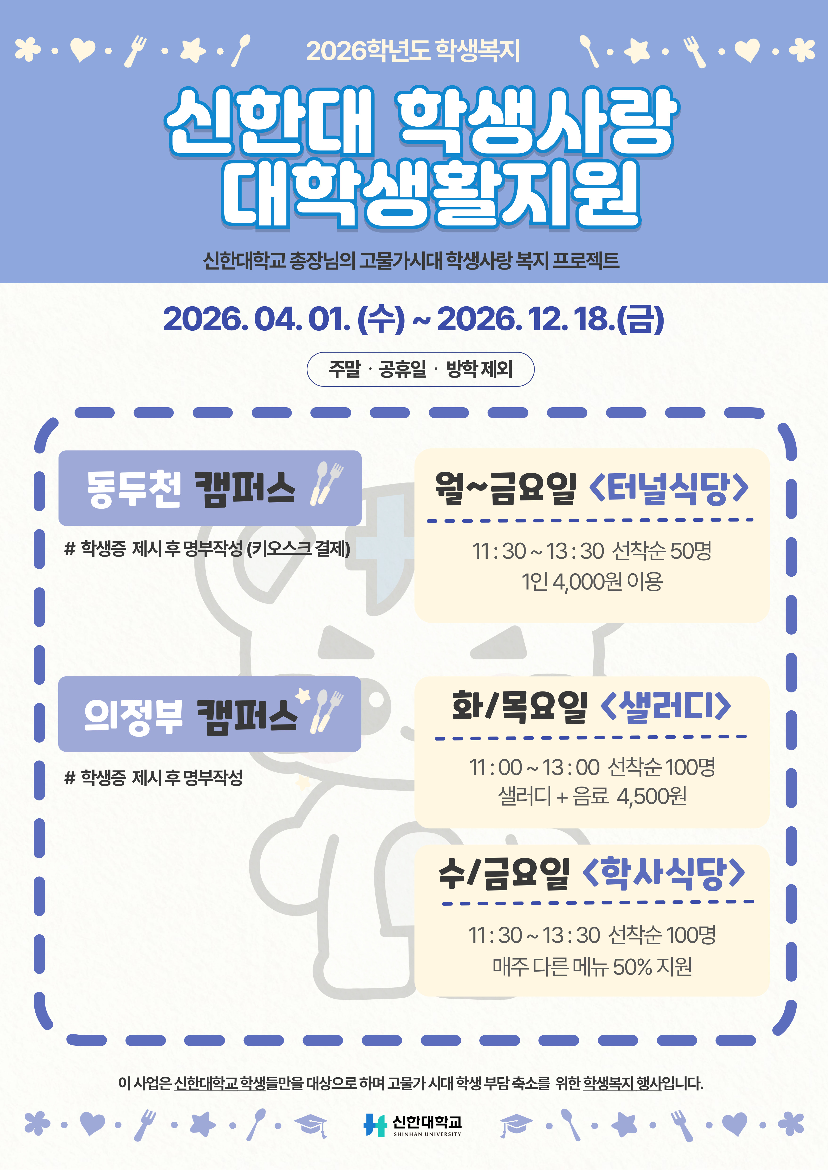 [학생복지] 2026학년도 '신한대 학생사랑 대학생활지원' 안내