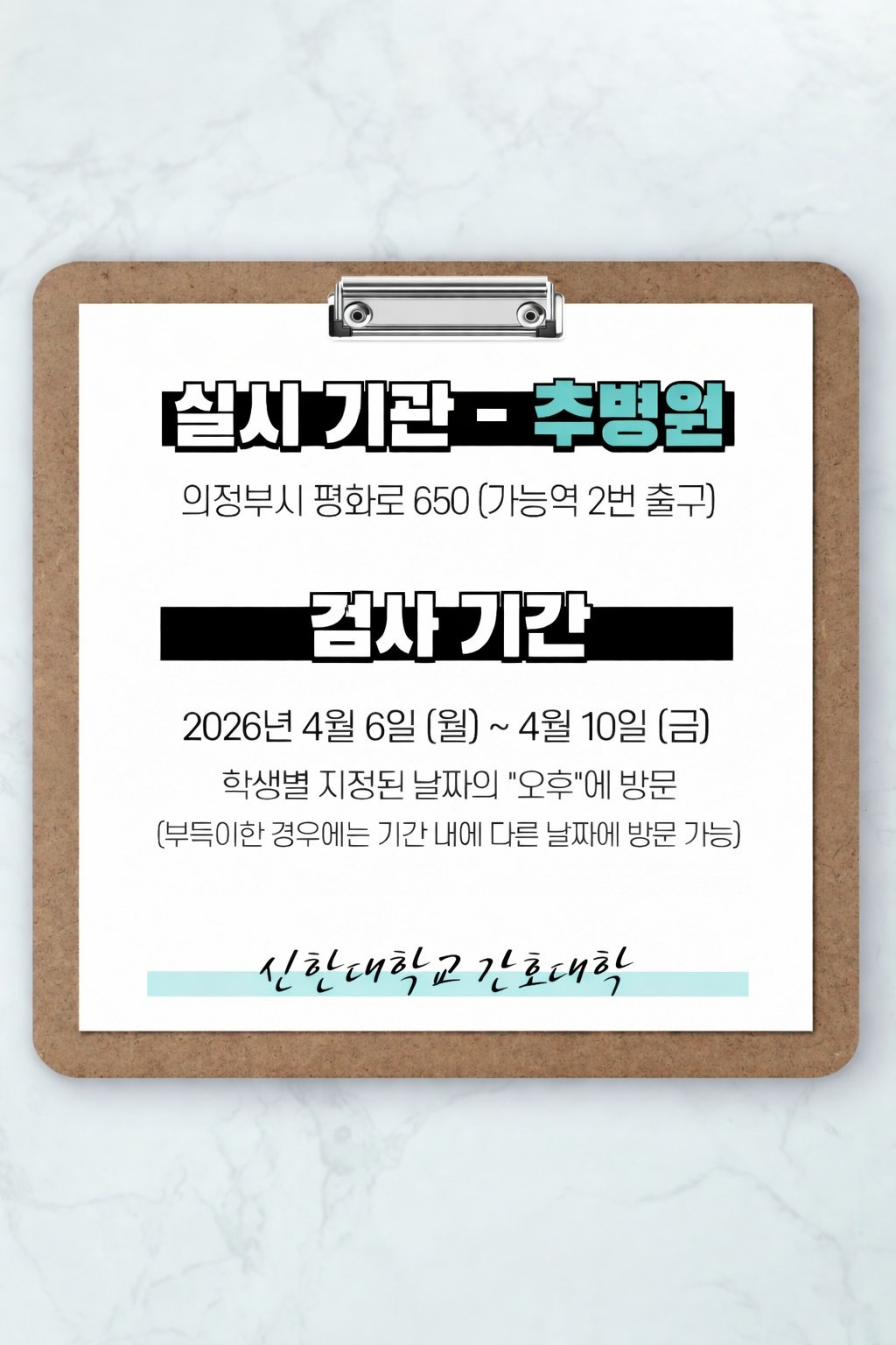 장소: 의정부시 평화로 650 추병원 (가능역 2번출구)