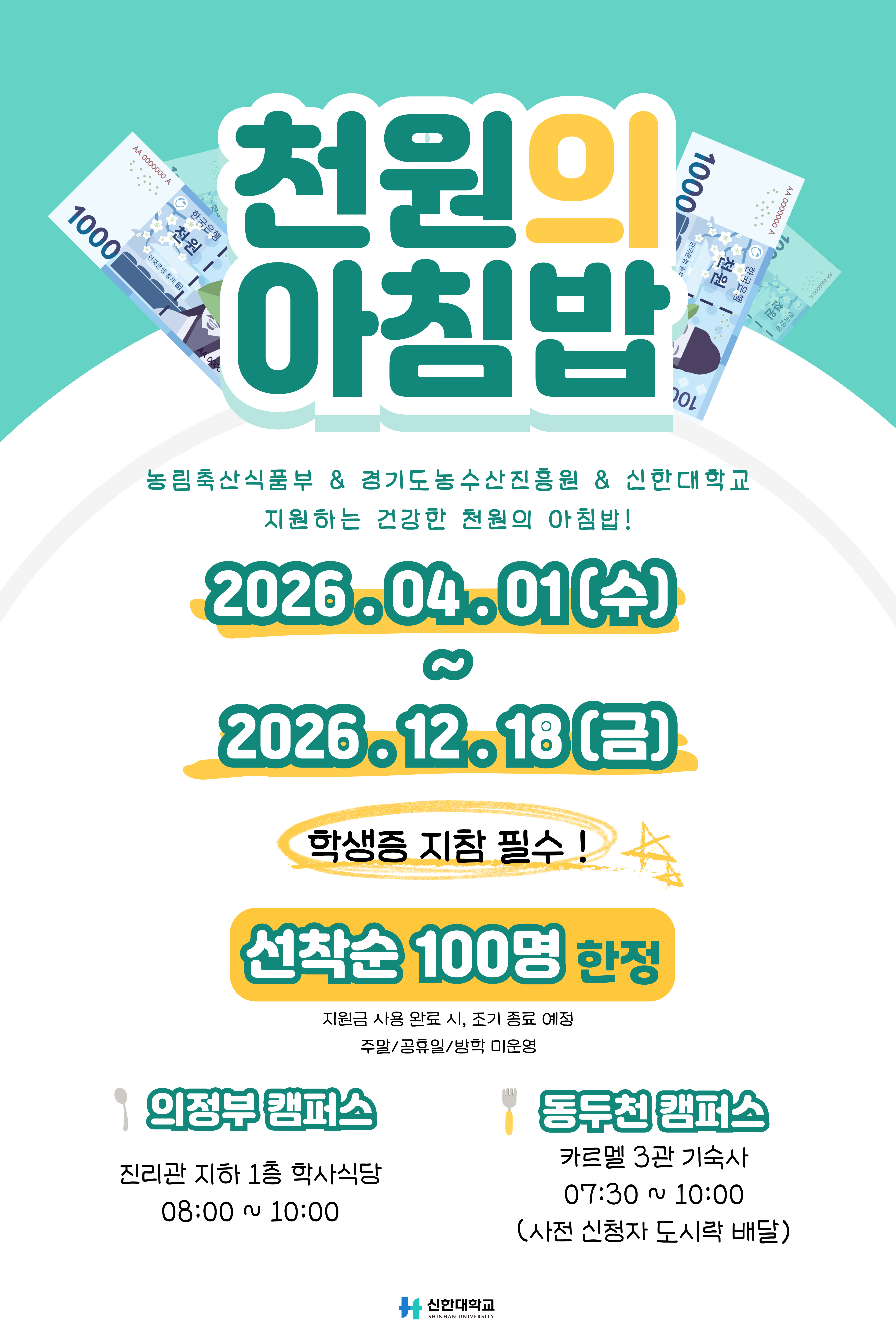 [학생복지] 2026학년도 천원의 아침밥 사업 안내