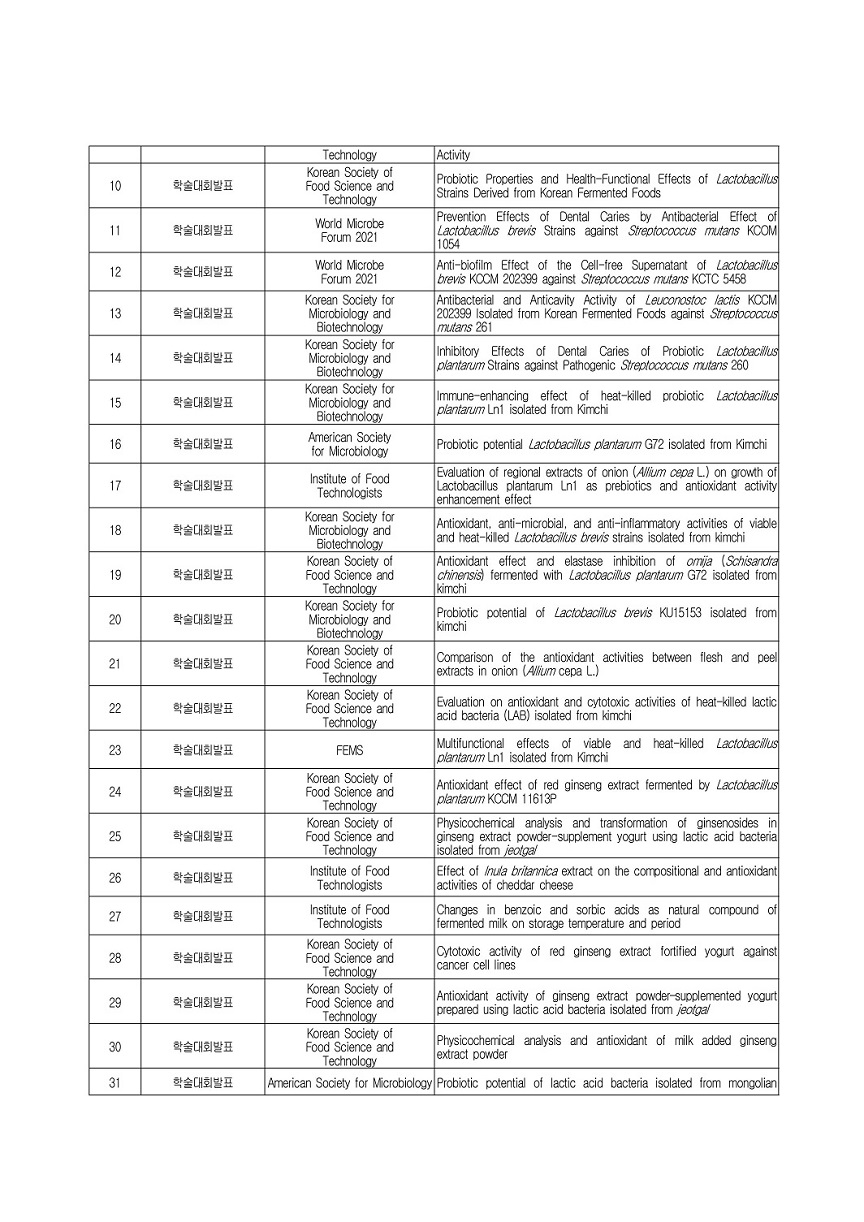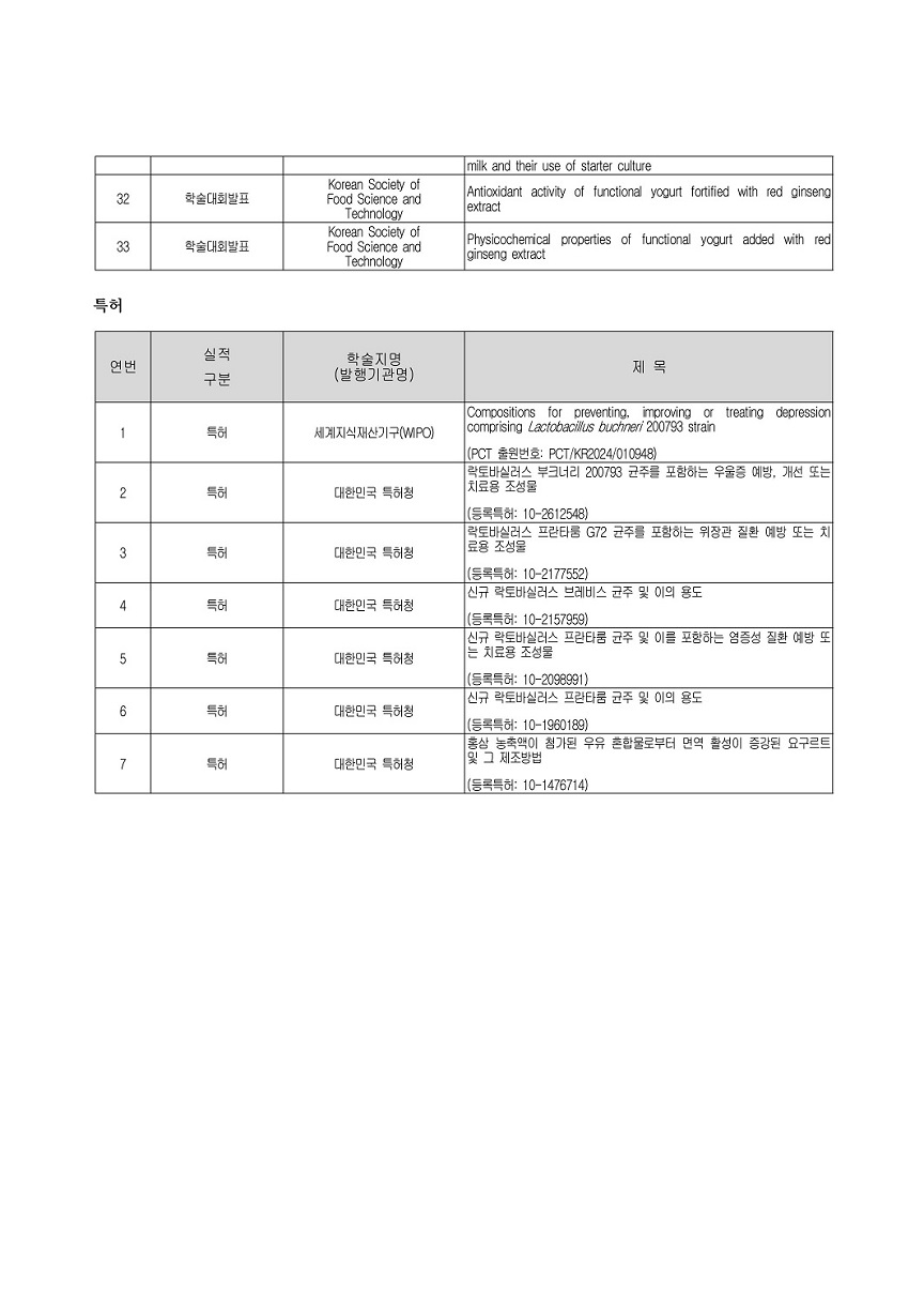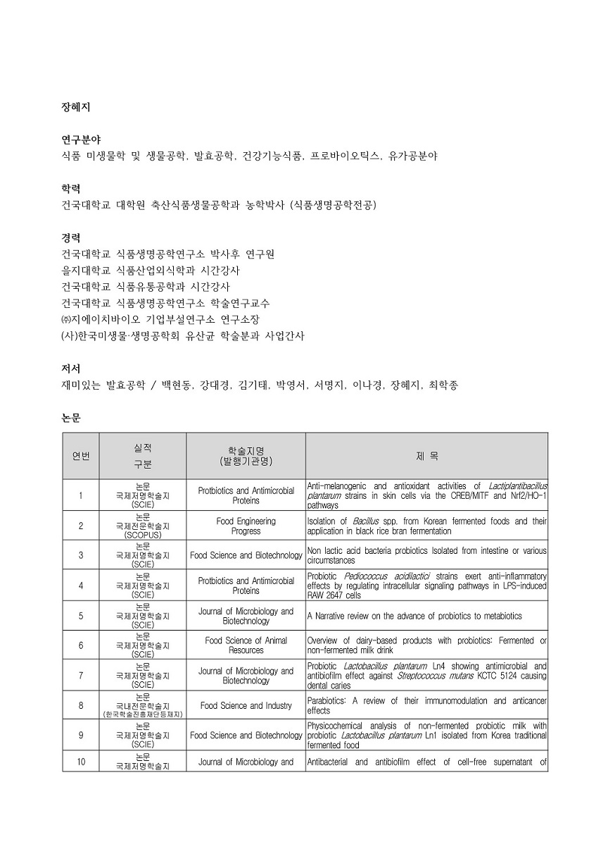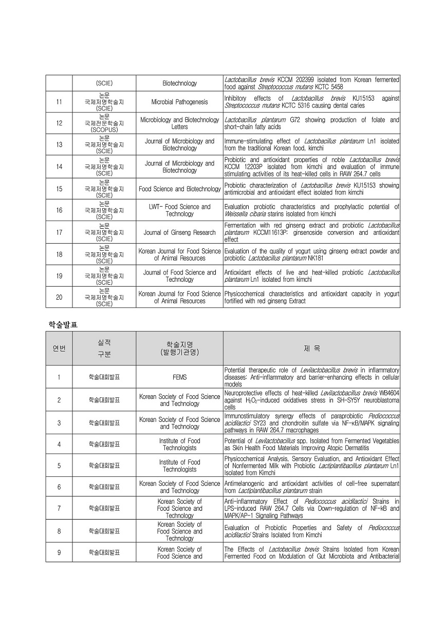 식품 미생물학 및 생물공학, 발효공학, 건강기능식품, 프로바이오틱스, 유가공분야